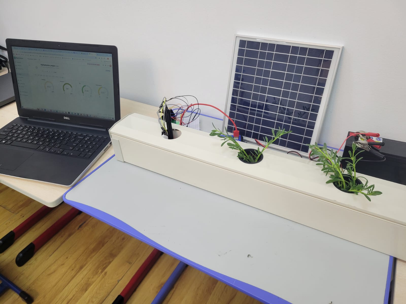 This project is a smart hydroponics monitoring and irrigation system built using an ESP32 microcontroller, DHT22 sensor, soil moisture sensor, and pH sensor. The ESP32 collects real-time data on temperature, humidity, soil moisture, and pH levels and sends it to the Blynk IoT app, where users can monitor plant health remotely. An automated water pump relay ensures that when the system detects low moisture levels, irrigation starts automatically and stops once the soil is sufficiently hydrated. This makes the setup low-maintenance, efficient, and scalable for both home gardening and small-scale farming.